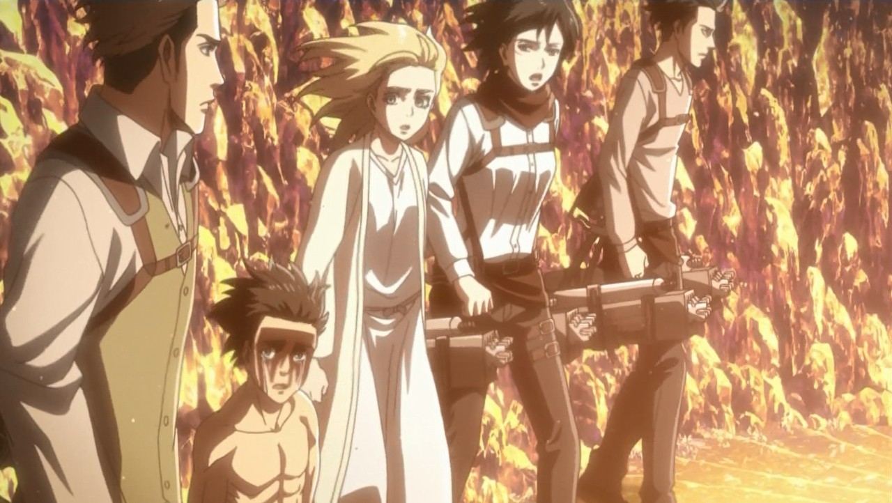ヒストリアはロッドに逆らい、エレンを連れて礼拝堂から脱出しようとする。すると、床にこぼれた薬品を体内に取り入れたロッドが巨人化してしまった。その衝撃で飛ばされるヒストリアと拘束されたままだったエレンを、駆けつけた調査兵団の仲間たちが救う。そうしている間にもロッド巨人の体は形成されていき、その大きさは超大型巨人をも超えるものとなった。仲間が危機に直面したとき、エレンは再び自分を信じることを選択する。