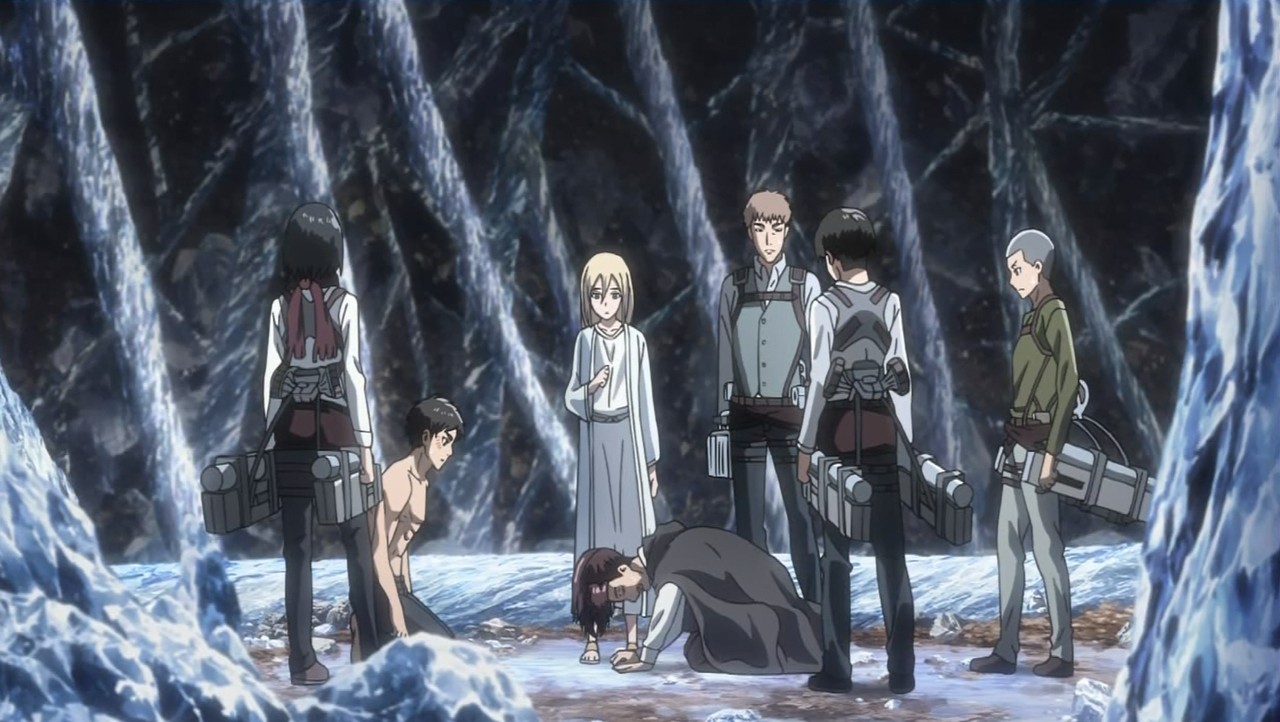 粉々に砕けたエレンがもう一度立ち上がれたのも同期たちのおかげだし(散々言われてたけどw)、ヒストリアが気遣われてたのも良かった。恐る恐る言い出すあたりコニー優しいなあ。ジャンもなんだかんだで同期のまとめ役やってるのがホント好き。