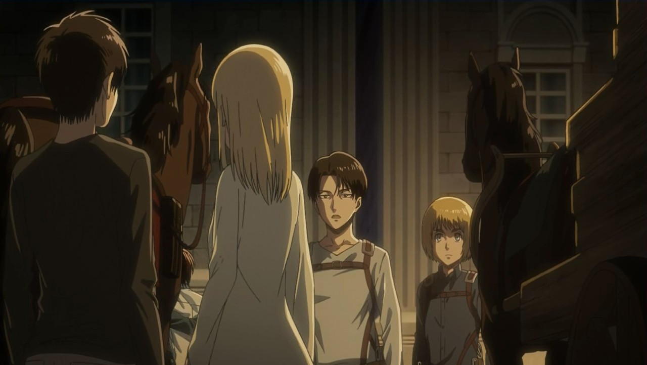 - なんでミカサ、ヒストリアに「女王に即位したら兵長殴れ」って進言したの?原作未読だからよく分かんなかった。先週のヒストリアの「人類は嫌い」と同様にね。