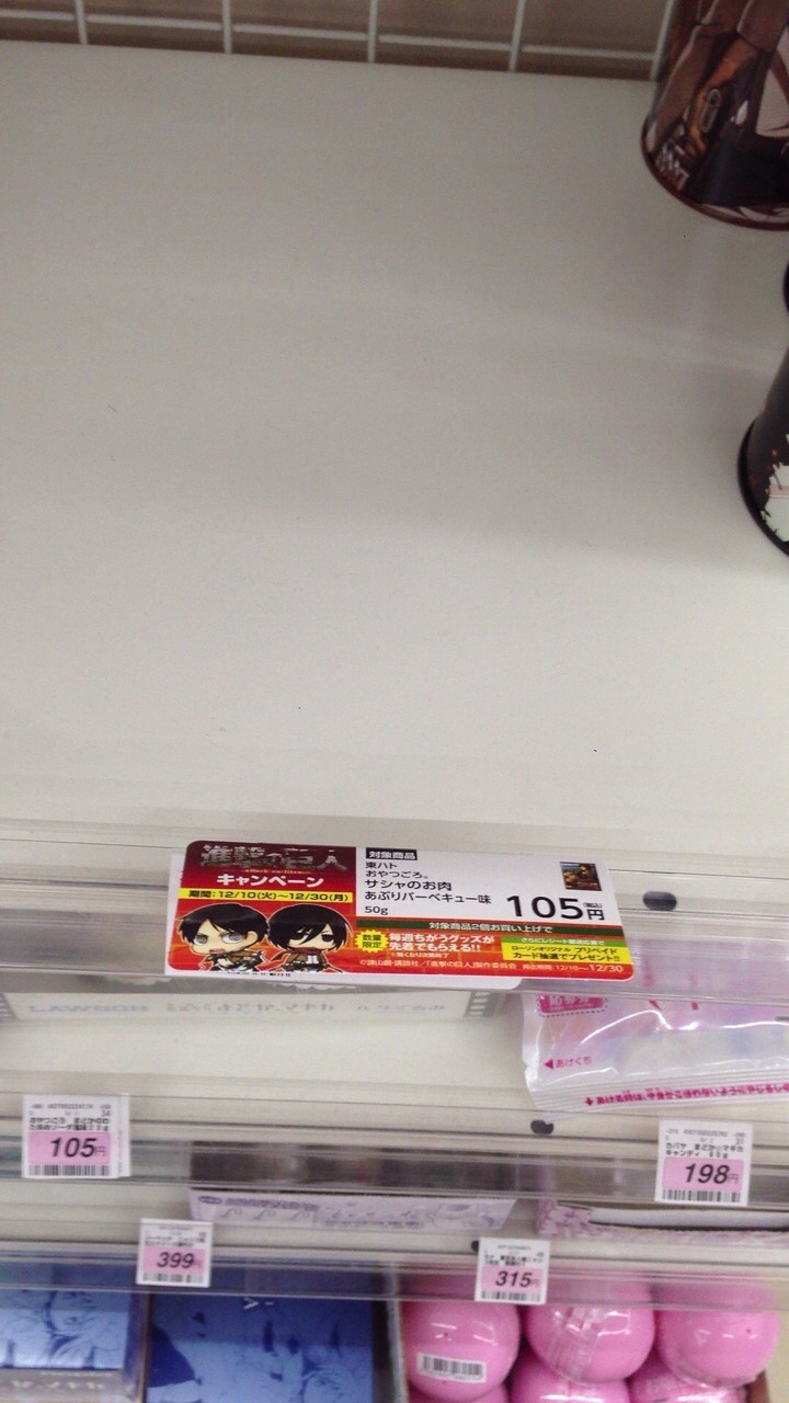 >>【進撃の巨人】本日、ローソンにファンが進撃!コラボ商品が駆逐されるまとめ!!