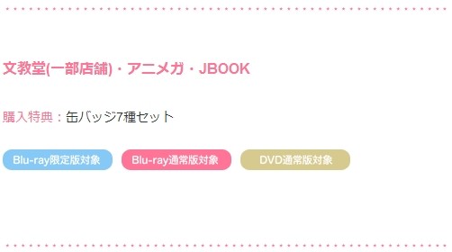 しかし、店舗によってはBlu-ray限定版、Blu-ray通常版、DVD通常版どれを購入するかによって特典が付かない場合があるので注意が必要だ。
