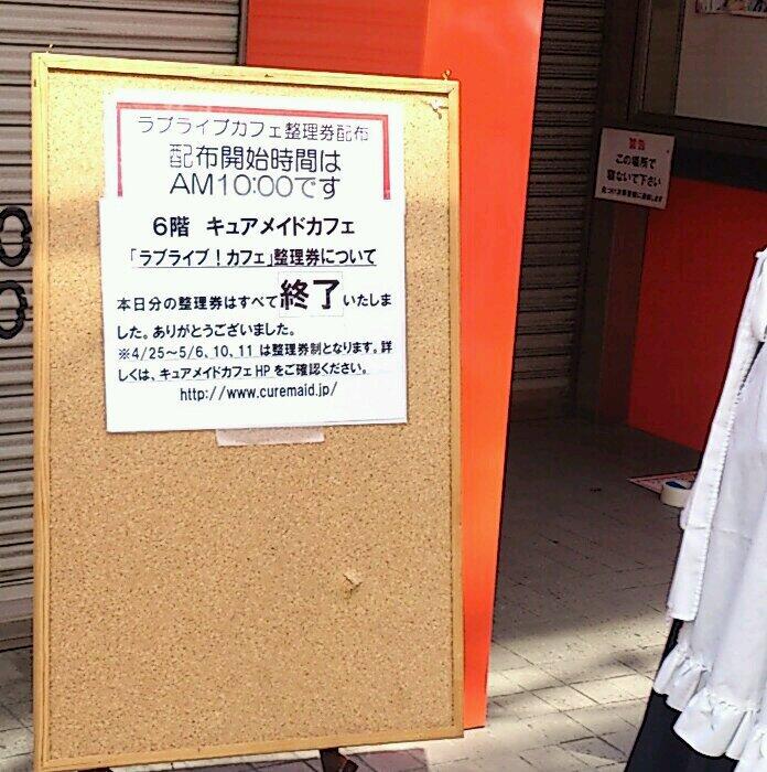 【悲報】10:35現在、キュアメイドカフェでの、ラブライブ!カフェ整理券配布終了!