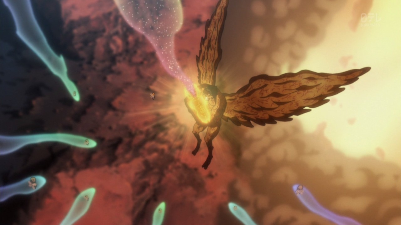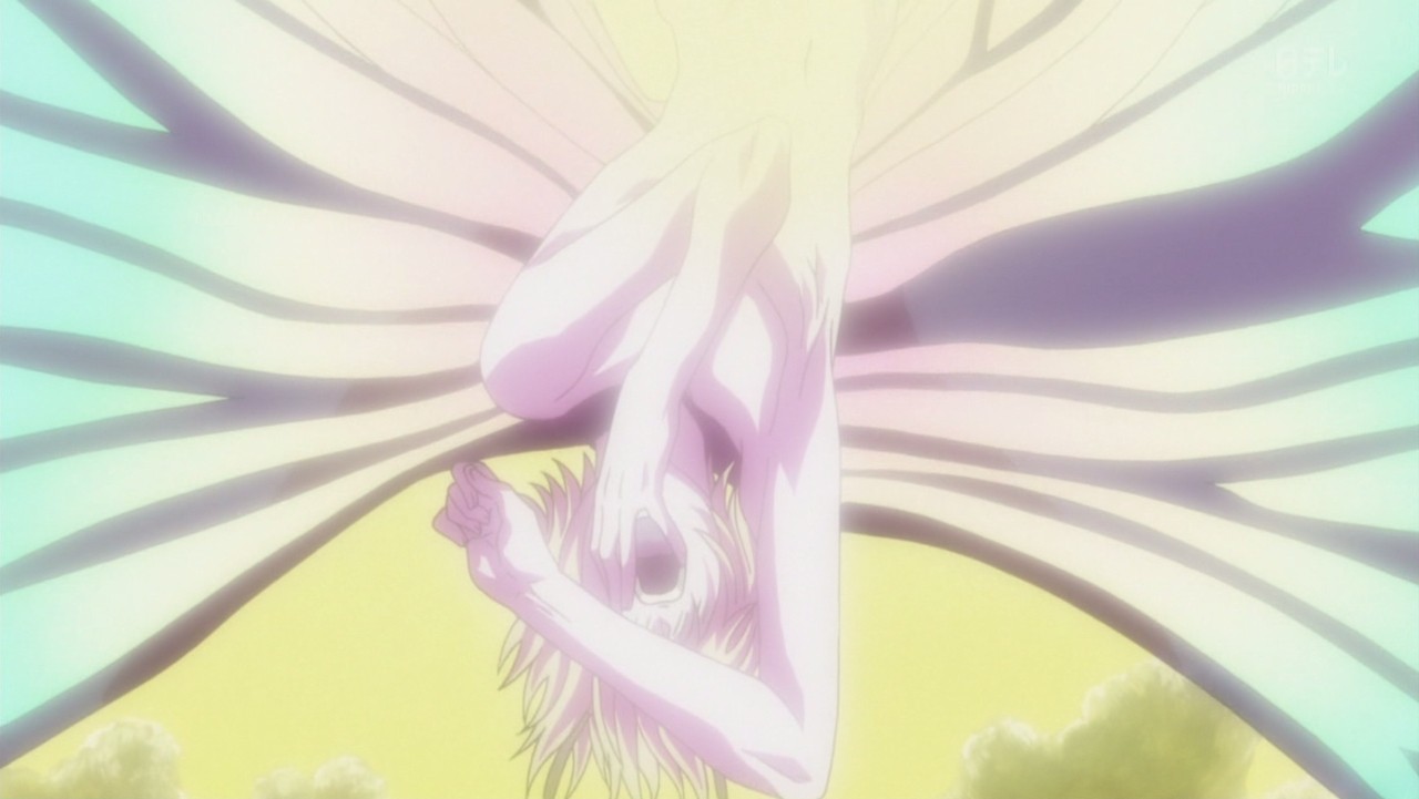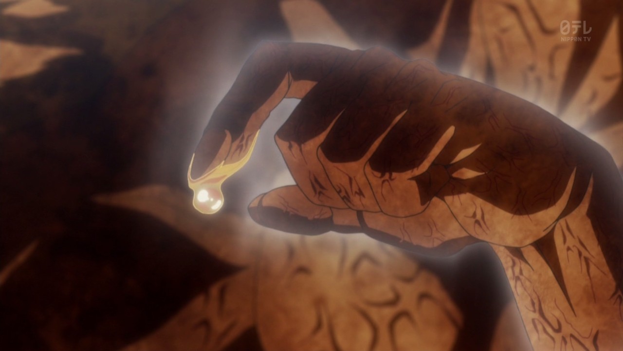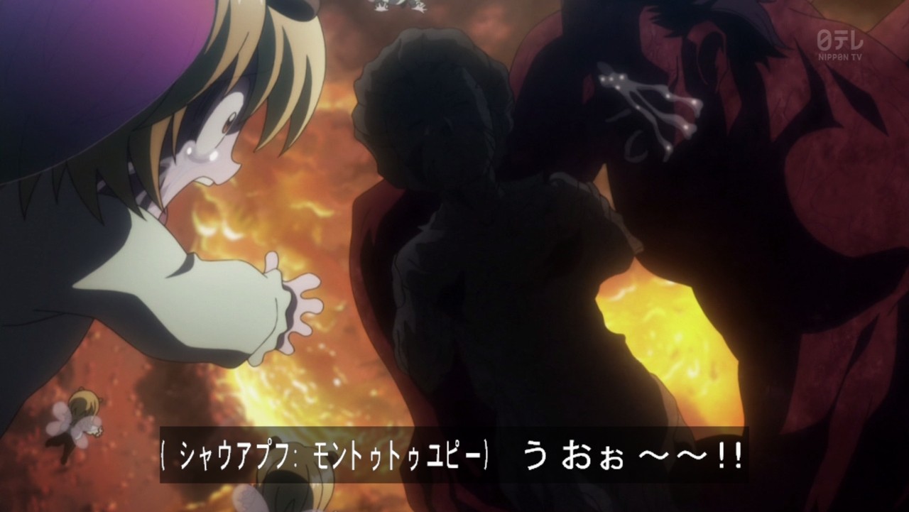 王・メルエムの変わり果てた姿を見たプフとユピー。この世の終わりを嘆くが如く悲しみに満ちた声がただ響き渡る。涙に顔を濡らし、絶望に苛まれる二匹。が、王はまだ死んではいなかった。プフは瞬時に王を救う方法を思いつく。「私を召し上がっていただく」。王の命を救うため自らの身を捧げるプフの表情は、絶望の涙から王をいやせる歓喜の涙に変わった。そして…