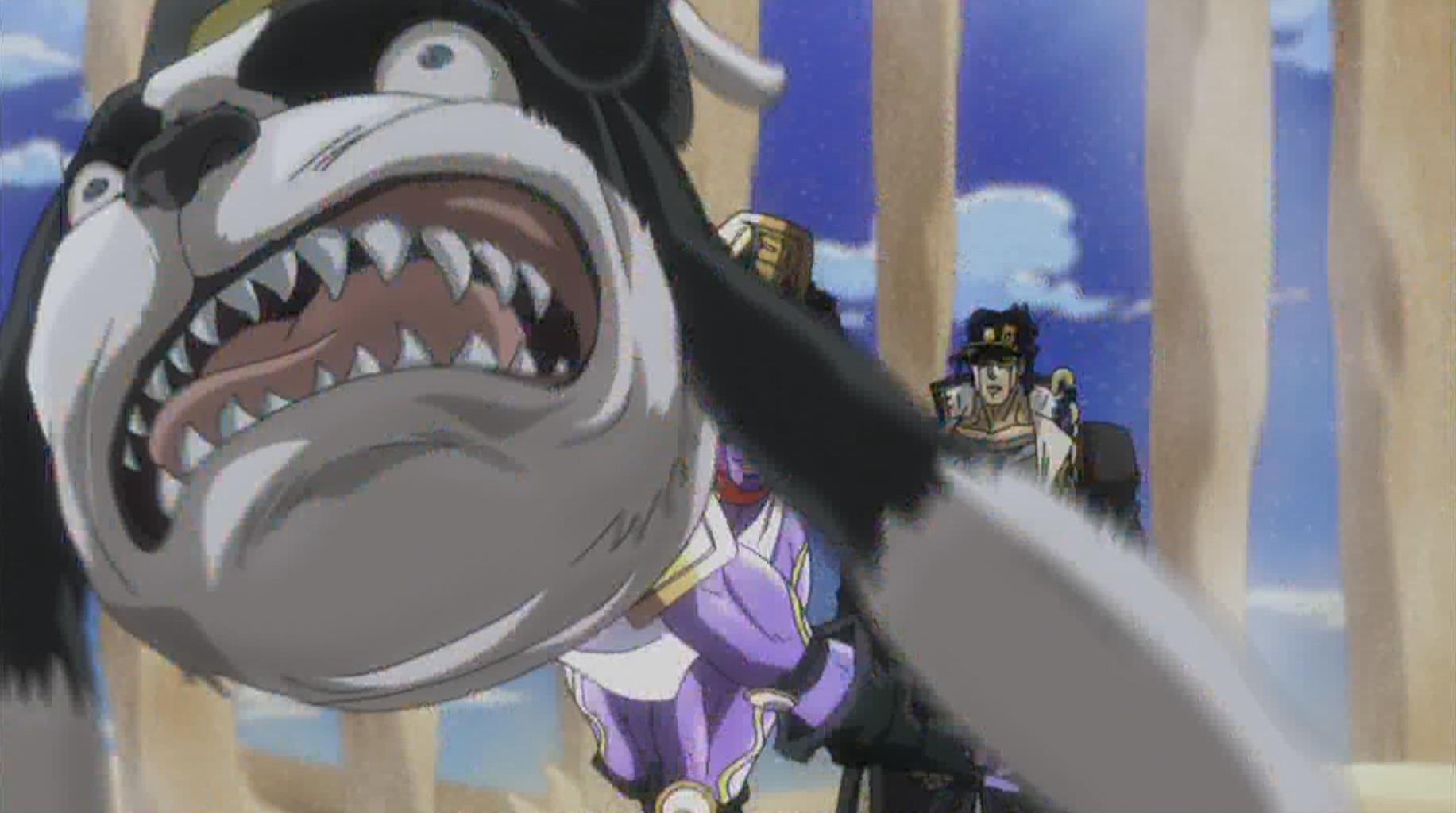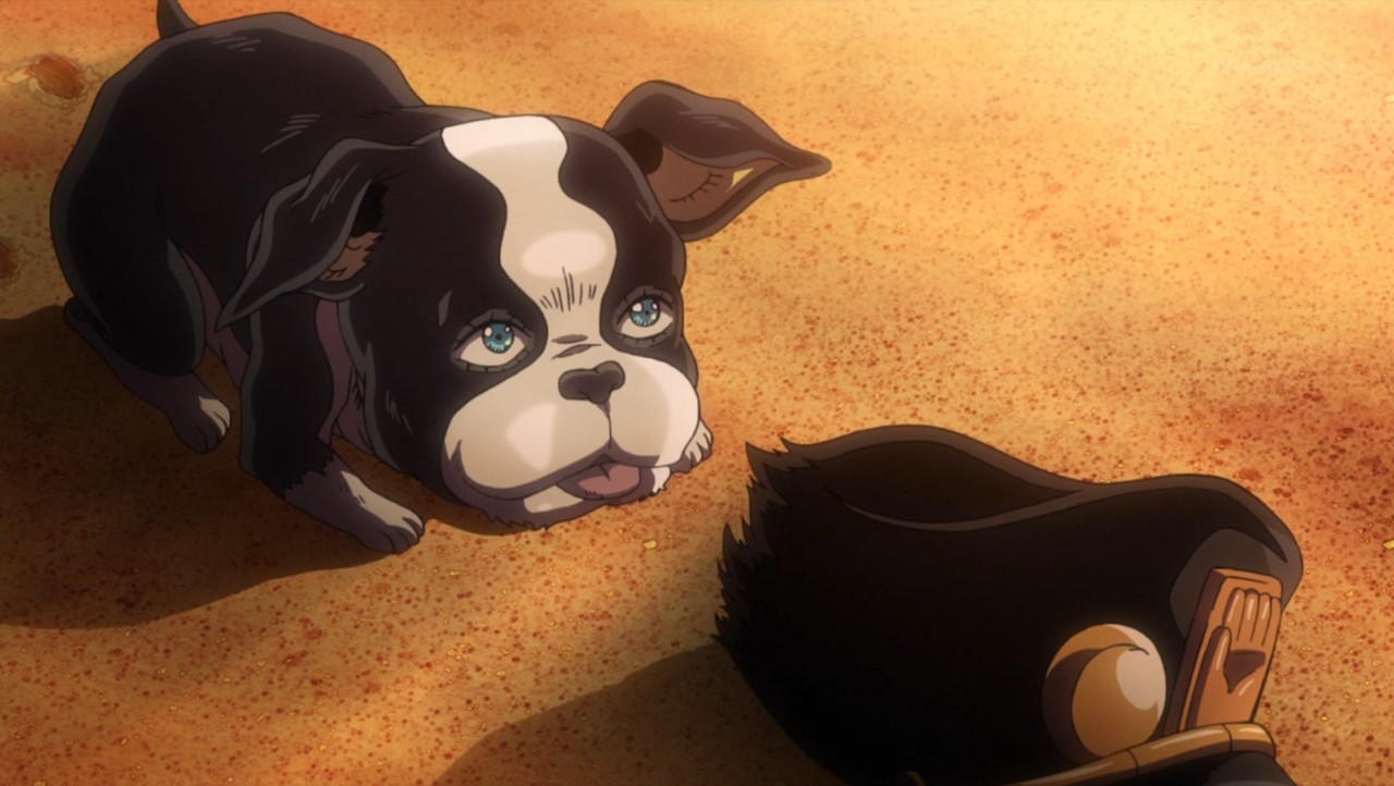 犬に厳しいアニメ。3部で五本の指に入るンドゥール戦。決闘チックで燃える。唐突の英語のルビ・シュートヒムに痺れた掲載時。オインゴボインゴは1話か。こいつらのせいで敵が9人と知れたのにカウントし損ねる羽目に。ギャグ回に期待。2015/01/17 01:05:59