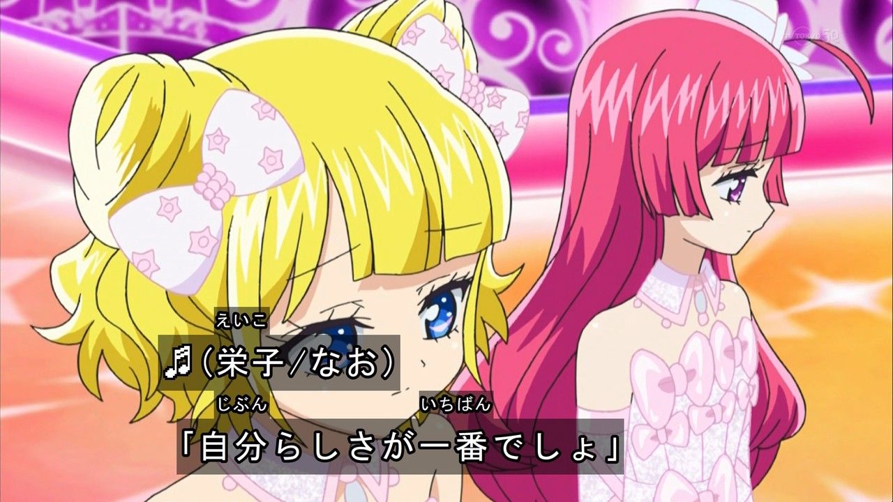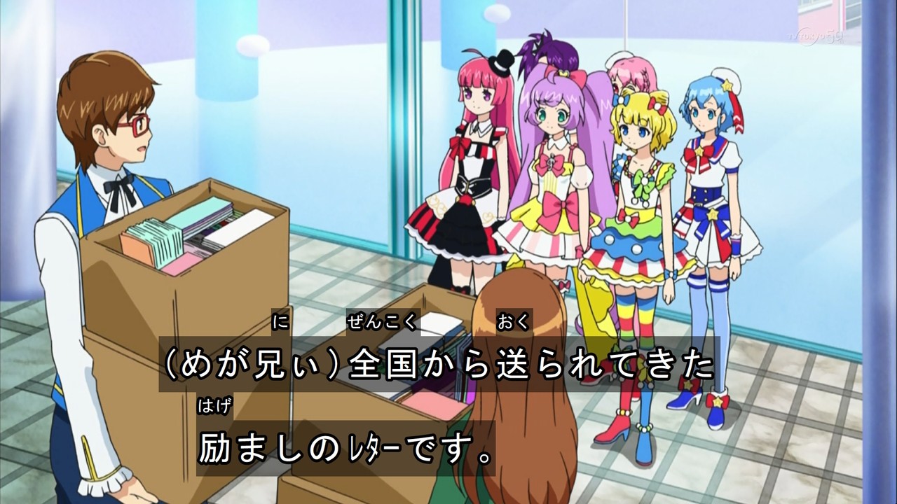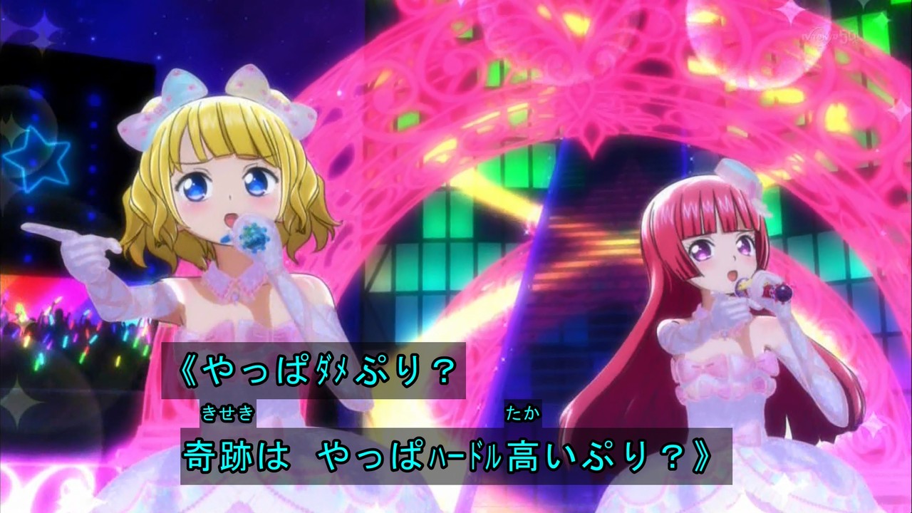 - らぁらの「みんなの気持ち受け取ったよ」って台詞を聞いて、プリリズのあいらが最終回前のライブで言った「みんなの想い、受け取ったよ」って台詞を思い出して今までのシリーズへのリスペクトを感じて感動しました。