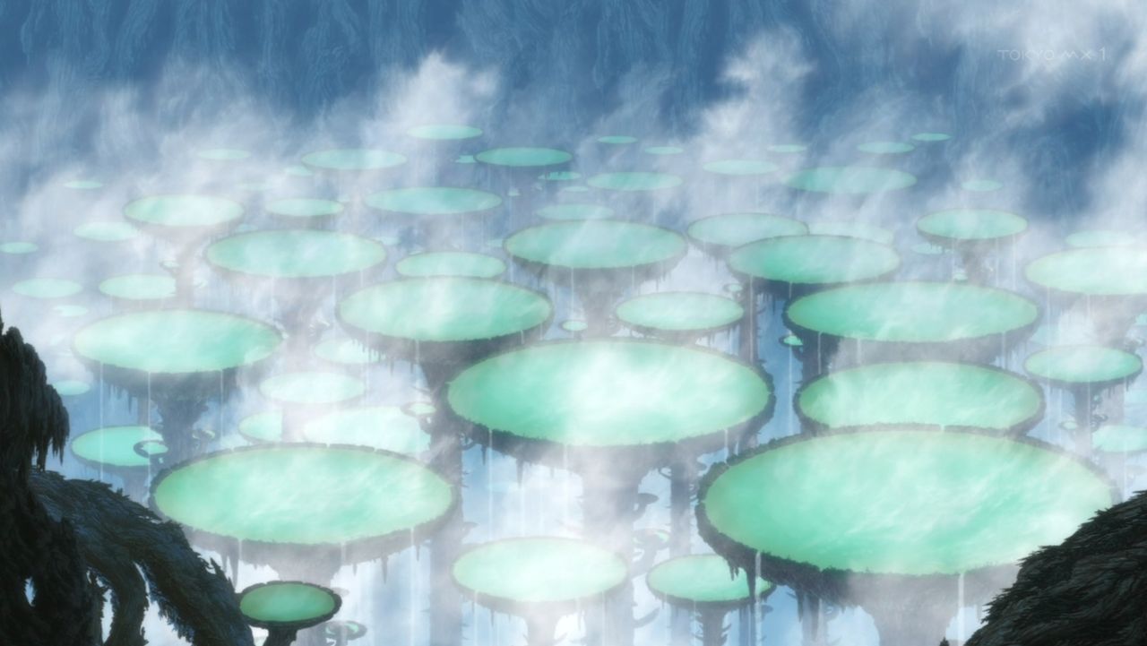 リコ『巨人の盃、ダイラカズラが出してるんだよ。景色が青いのもこれが出す湯気と力場の光が混ざったせいらしいよ』
