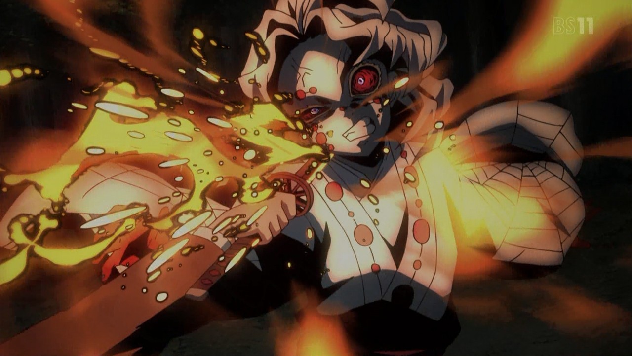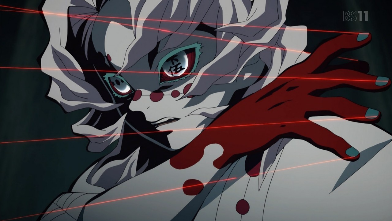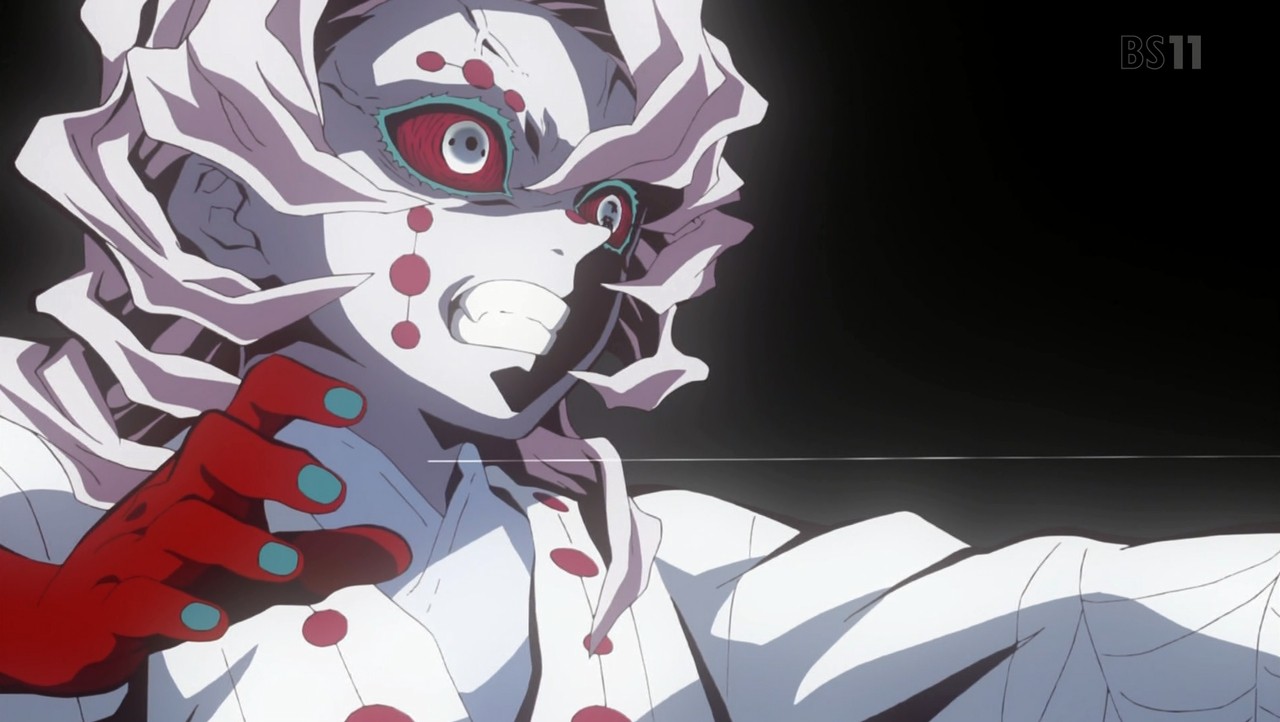 『威勢がいいなぁ。できるならやってごらん。十二鬼月である僕に勝てるならね』