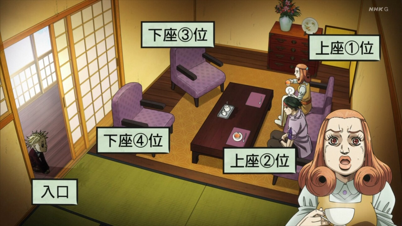 「“下座”でございます。主人に会うまでは下座に座ってお待ちになるのがマナーでございます」