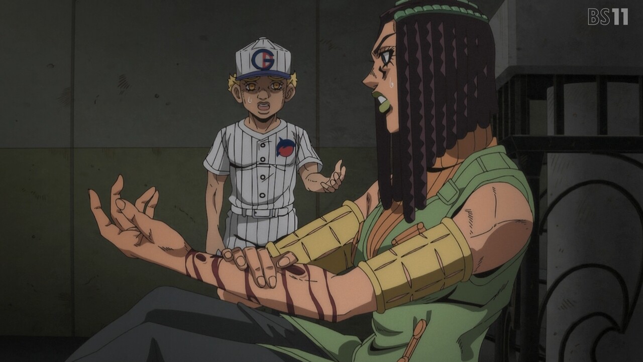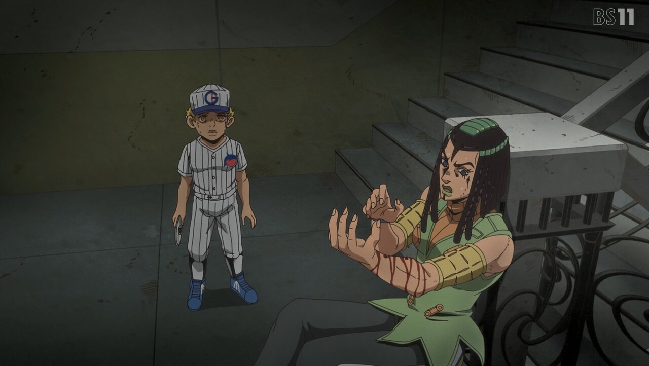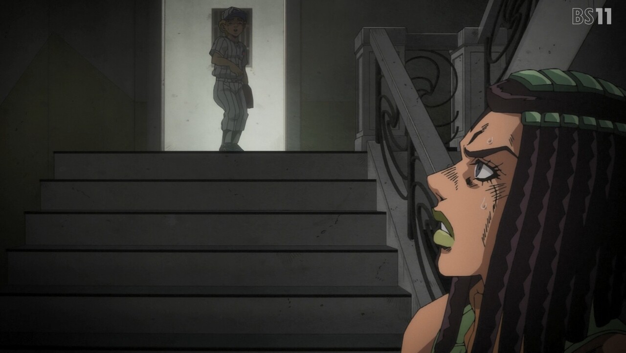 - 階段でのやりとり、原作だとこのあとエンポリオの能力の説明を含めたいろんなことが起こるけど