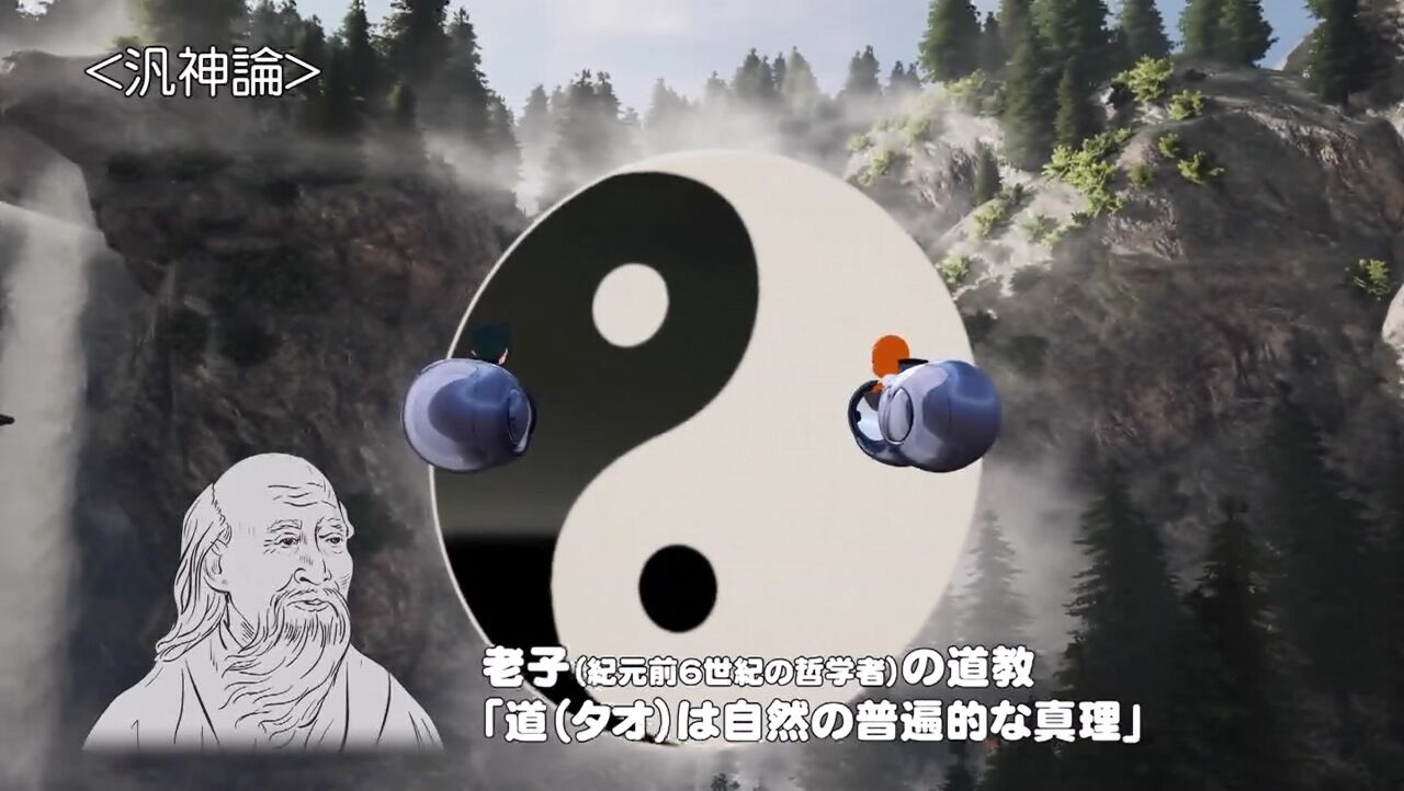 「宇宙の根本原理自体が神…それが汎神論。汎神論といえば…日本のすべての自然に八百万の神が宿っているというアニミズムや」