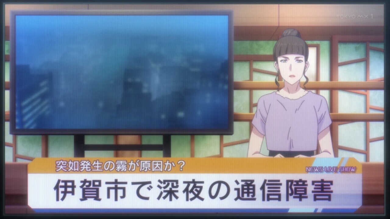 《次のニュースです。昨夜未明三重県伊賀市で突如霧のようなものが発生し数時間一切の通信が途切れる電波障害が起こりました。原因は現在調査中とのことです》