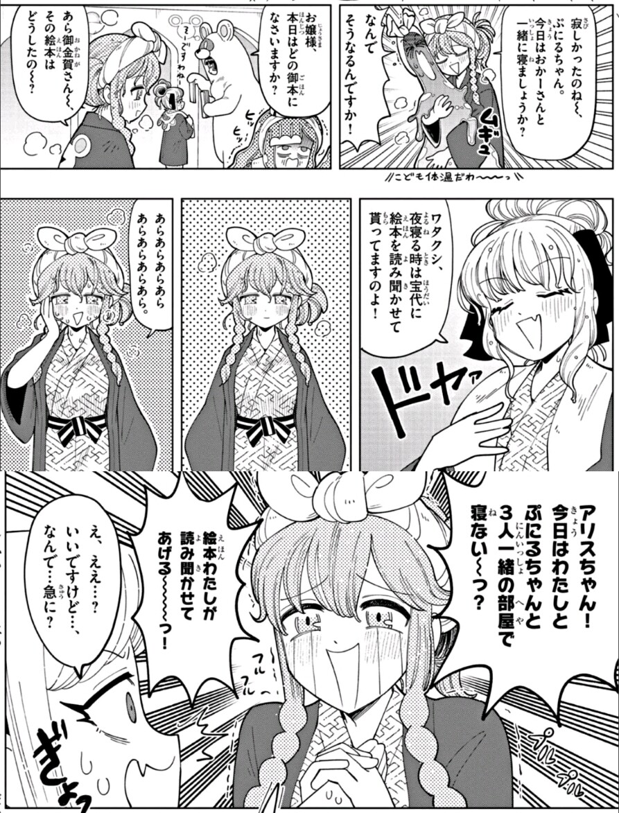 - ちなみに原作だと、読み聞かせを巡って雲母先輩と宝代が睨み合ってぷにるとアリスが怯えてるのがオチで、