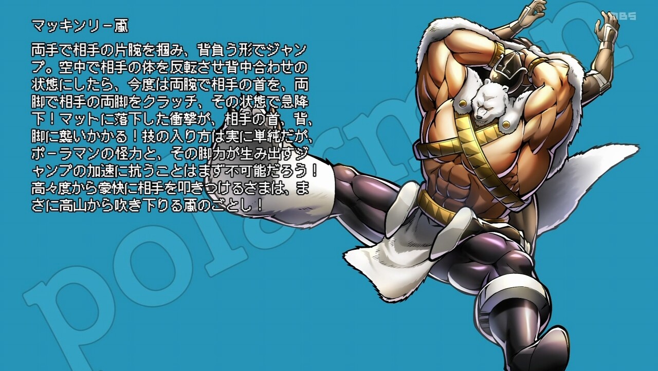 記憶の中の両親、そして尊敬する師・ロビンマスクから受けた大切な言葉を思い出したウォーズマンにもはや迷いはなくなった。生身と機械の最大の違いは命の重みを知ることだ。そう思い至った彼は“生きるための闘い”を貫き通すファイトスタイルへとシフトチェンジ。ポーラマンの並外れたパワーにも持ち前の並外れたテクニック、そして仲間の声援を力に変える“友情パワー”で対抗していくが…彼には30分という戦闘時間のリミットが!?
