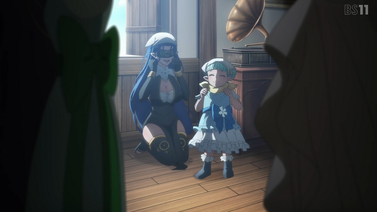ユーリ達の一番下の妹・メイは幼く、アインを見た途端大泣き。そんな彼女をあやそうと、真面目なアインは彼女を抱えて世界一の「たかいたかーい」!? 傍らには、この後大災害に転じるのではないかと密かに気を揉むクルシュとピナの姿があるのだった…。 五人の精霊姉妹が再会を喜び合う中、アインはユーリ達との出会いに思いを馳せる。自身の境遇だけでなく心も前向きに変わる事ができたと感謝し、これからも皆を守り抜きたいと、アインはウルスラに決意を伝えるのだった。