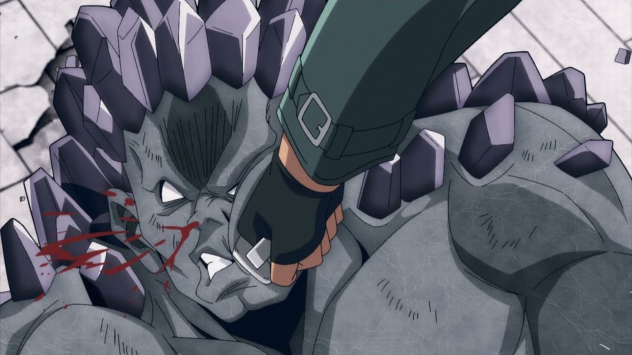 - 岩のヴィランが個性解除した途端に三下臭い見てくれになってるね。