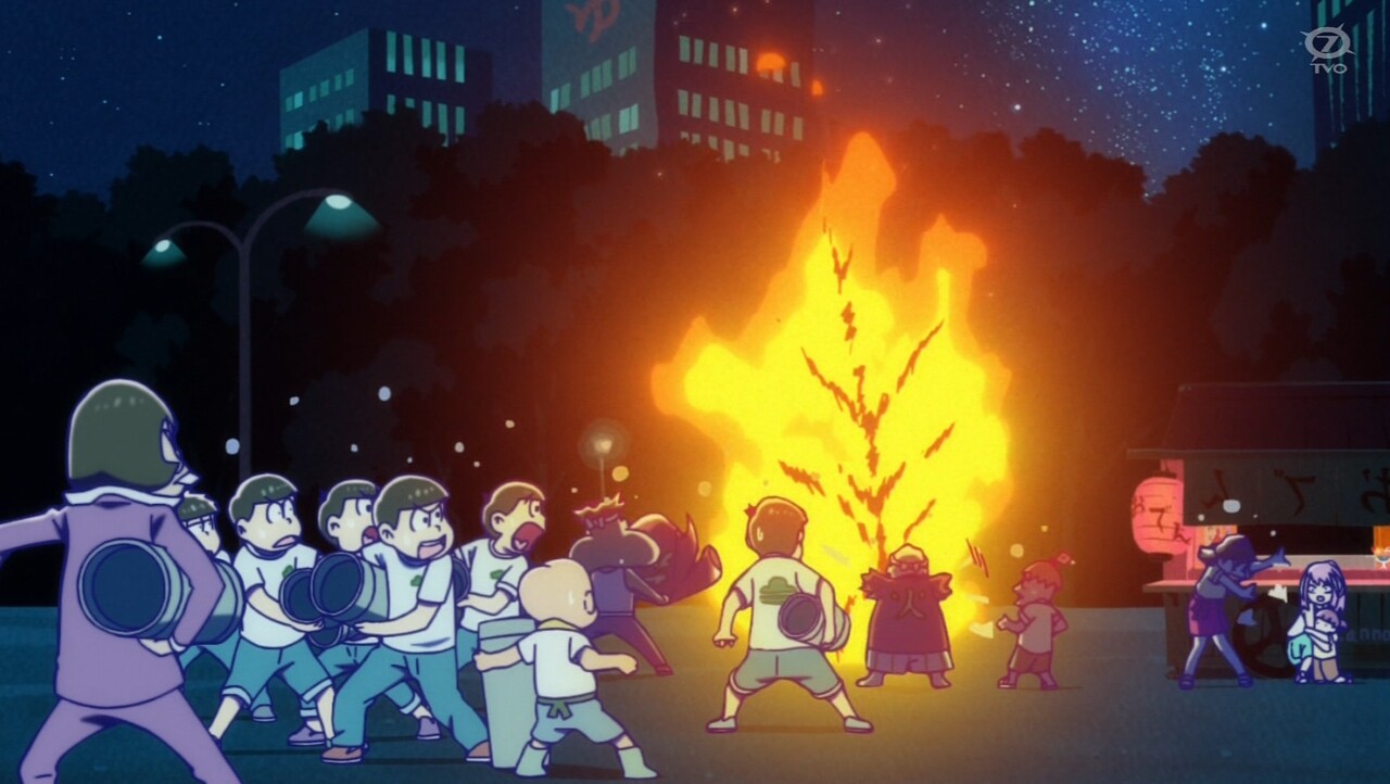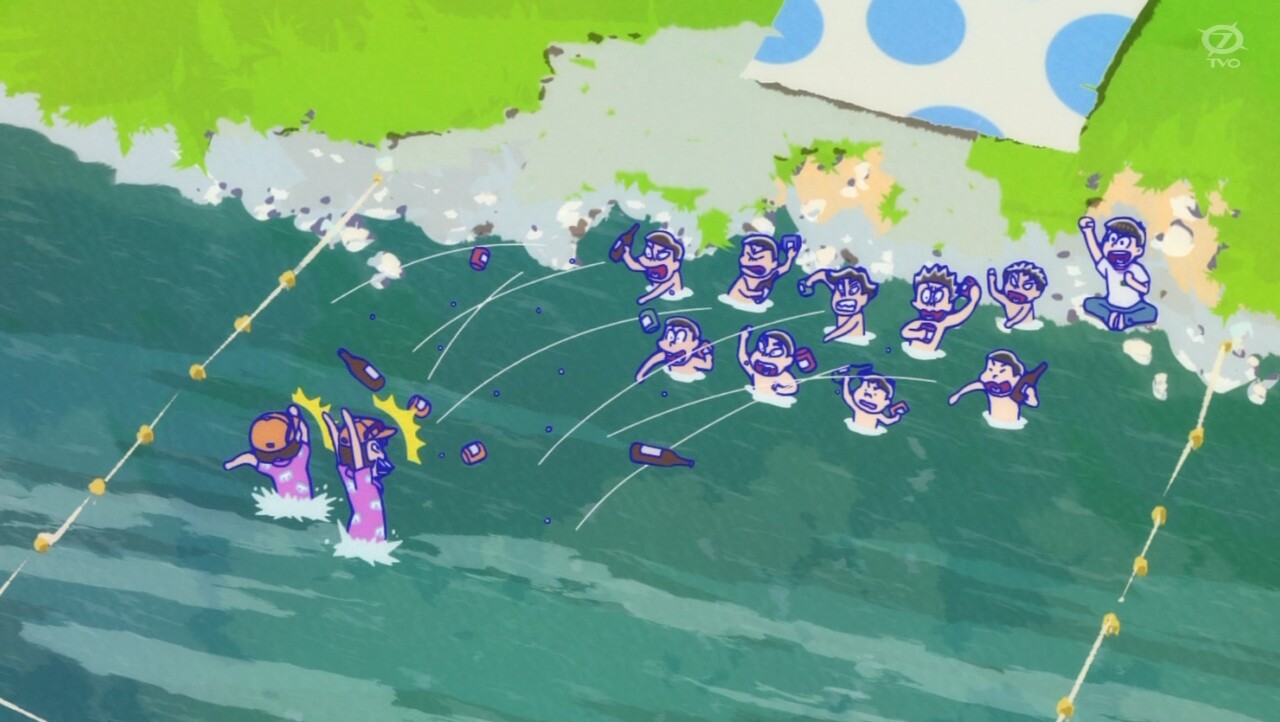 - 序盤で出かけようとした十四松が暑さで直ぐ戻ってきたけど、3期より前の十四松だったらどんなに暑くてもハイテンションで外で遊びまくってた気がする…