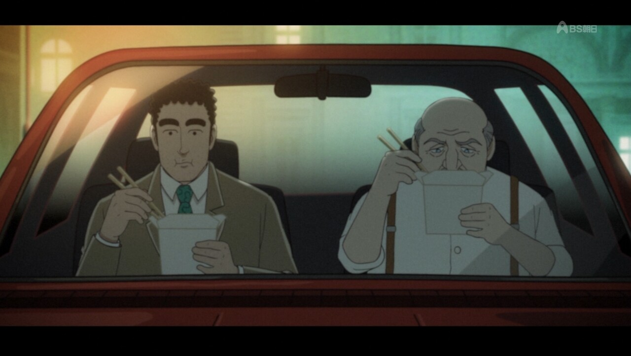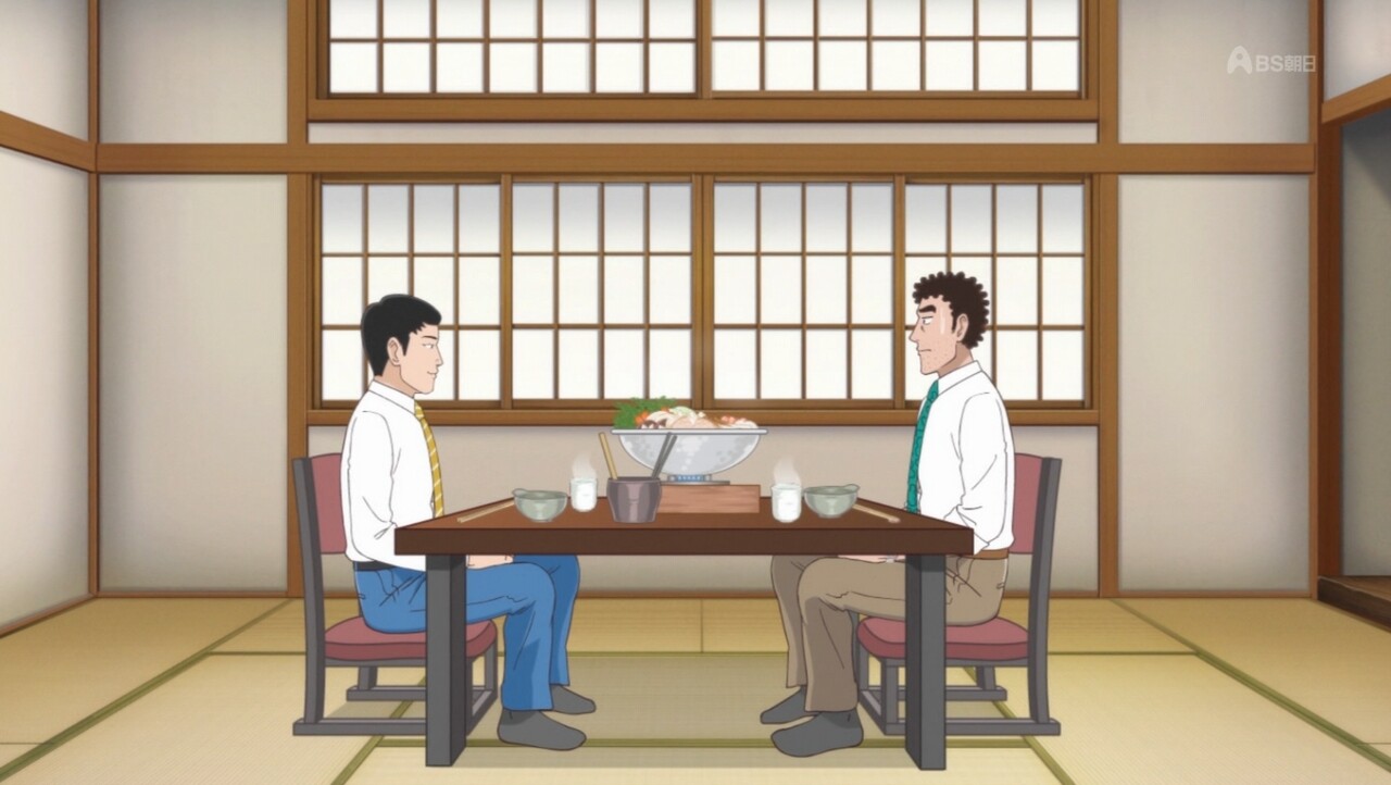 - 男二人でメシを食うだけなのに、前半と後半でこうも違うものか。