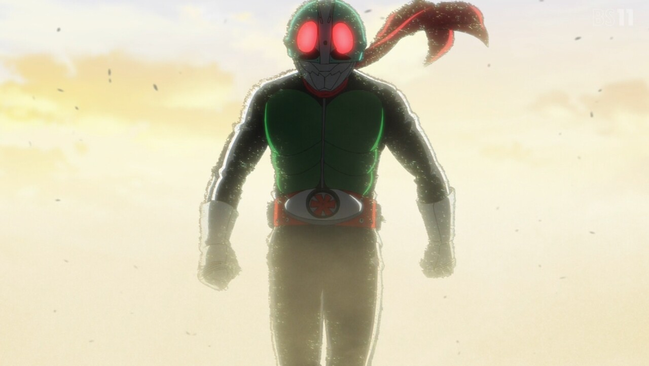 - クロスカウンターを決めたのに、東島の肘打ちで逆に吹っ飛ばされたタックルの視点で迫り来る仮面ライダーが、実写版ではなく原作漫画版のライダーになってる演出が細かいなあ