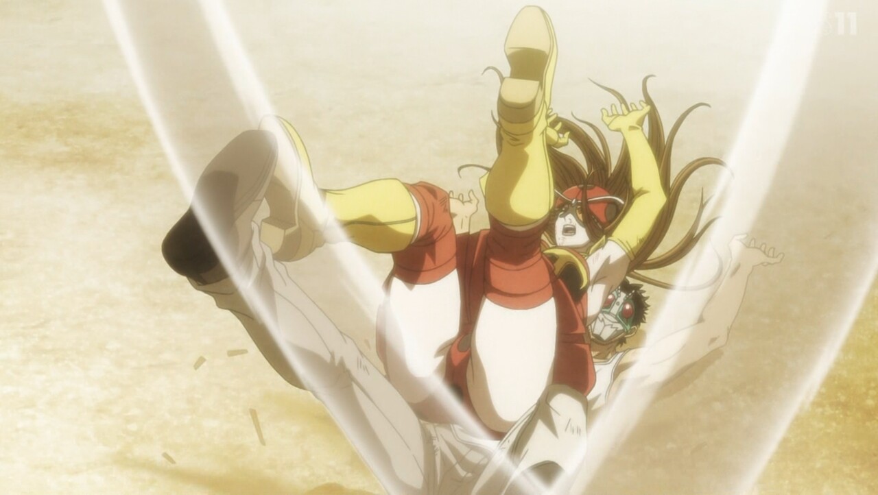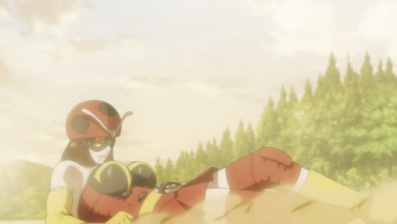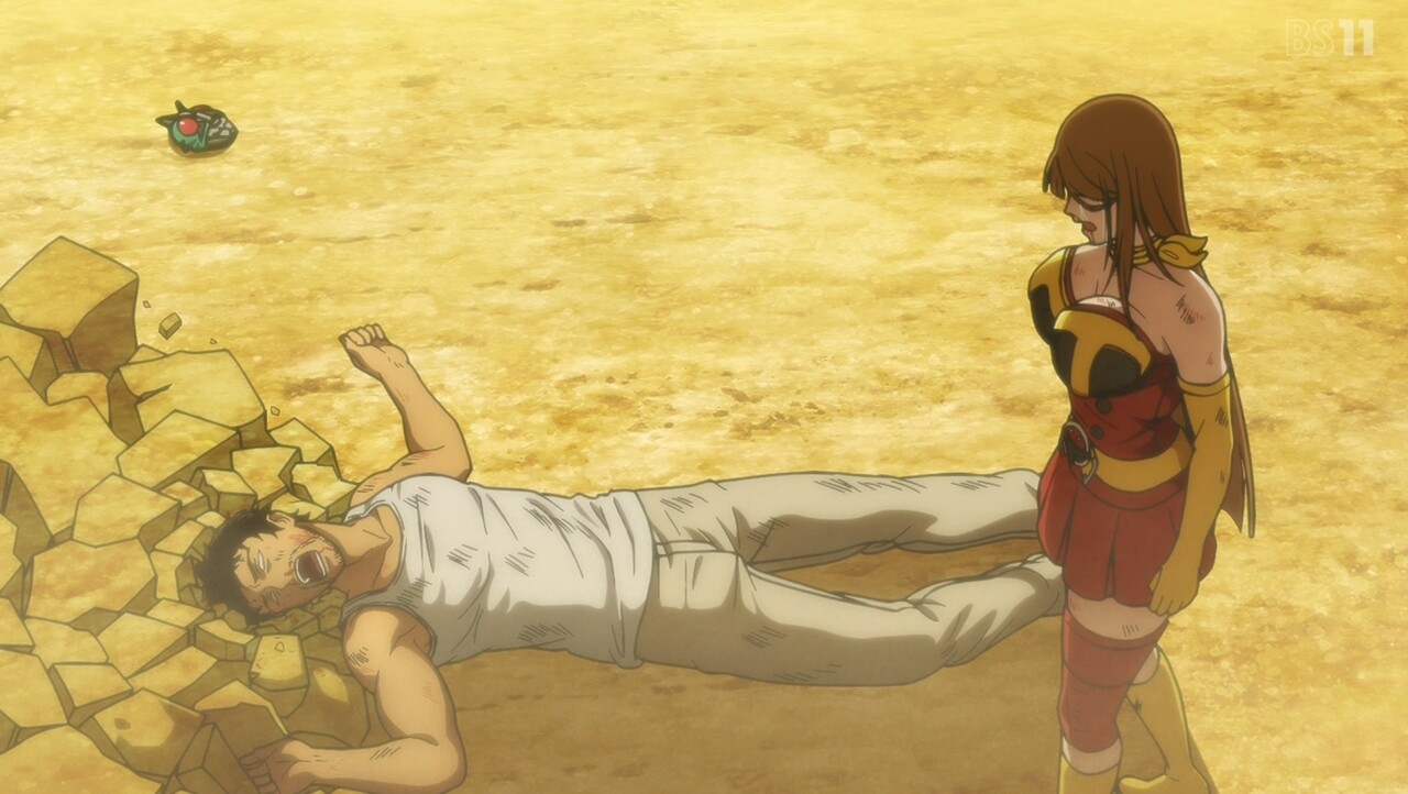 これが装着変身系平成ライダー愛だったら、ダメージで変身解除を受け入れて、あそこまで粘れなかったかも知れん(まあ、平成は一旦変身解除させられてもまた立ち上がって再変身が王道だから、解釈によるか?)