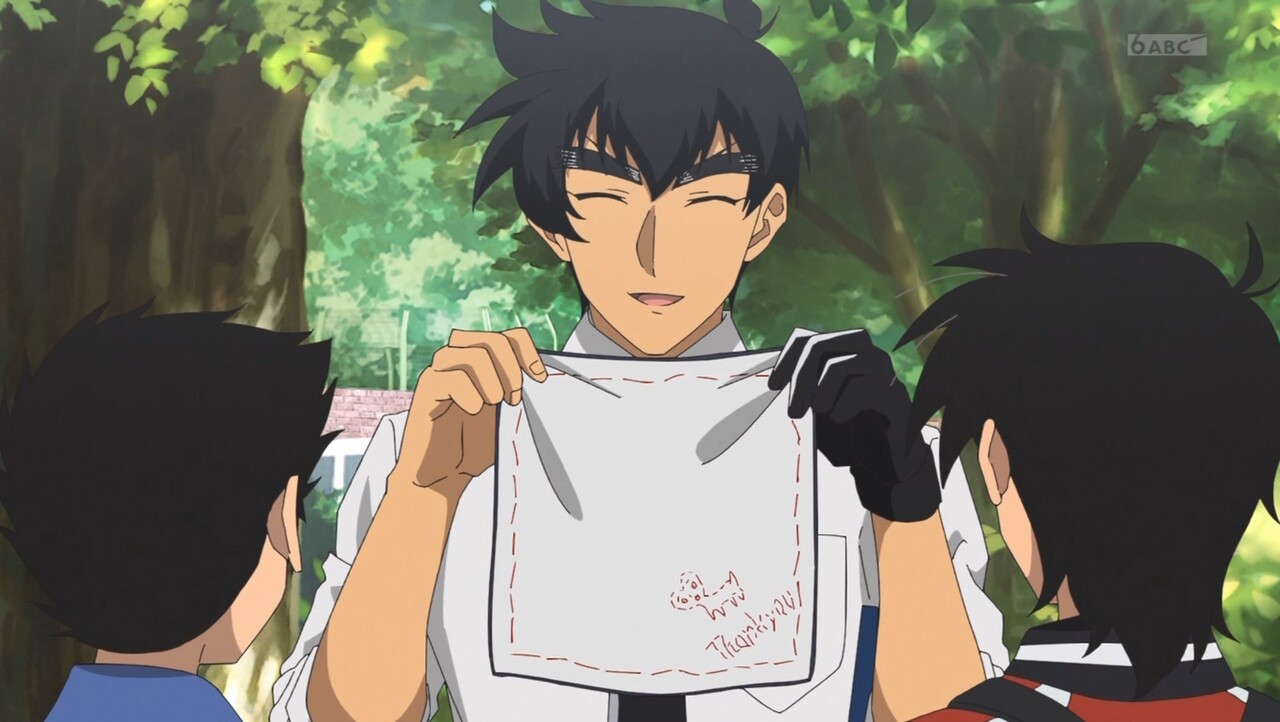 律子先生が郷子刺繍ハンカチでぬ~べ~の涙をぬぐうシーンが、ぬ~べ~が映っている平面(画面とかポスターとかみたいの)を拭いているような感じだとは思った